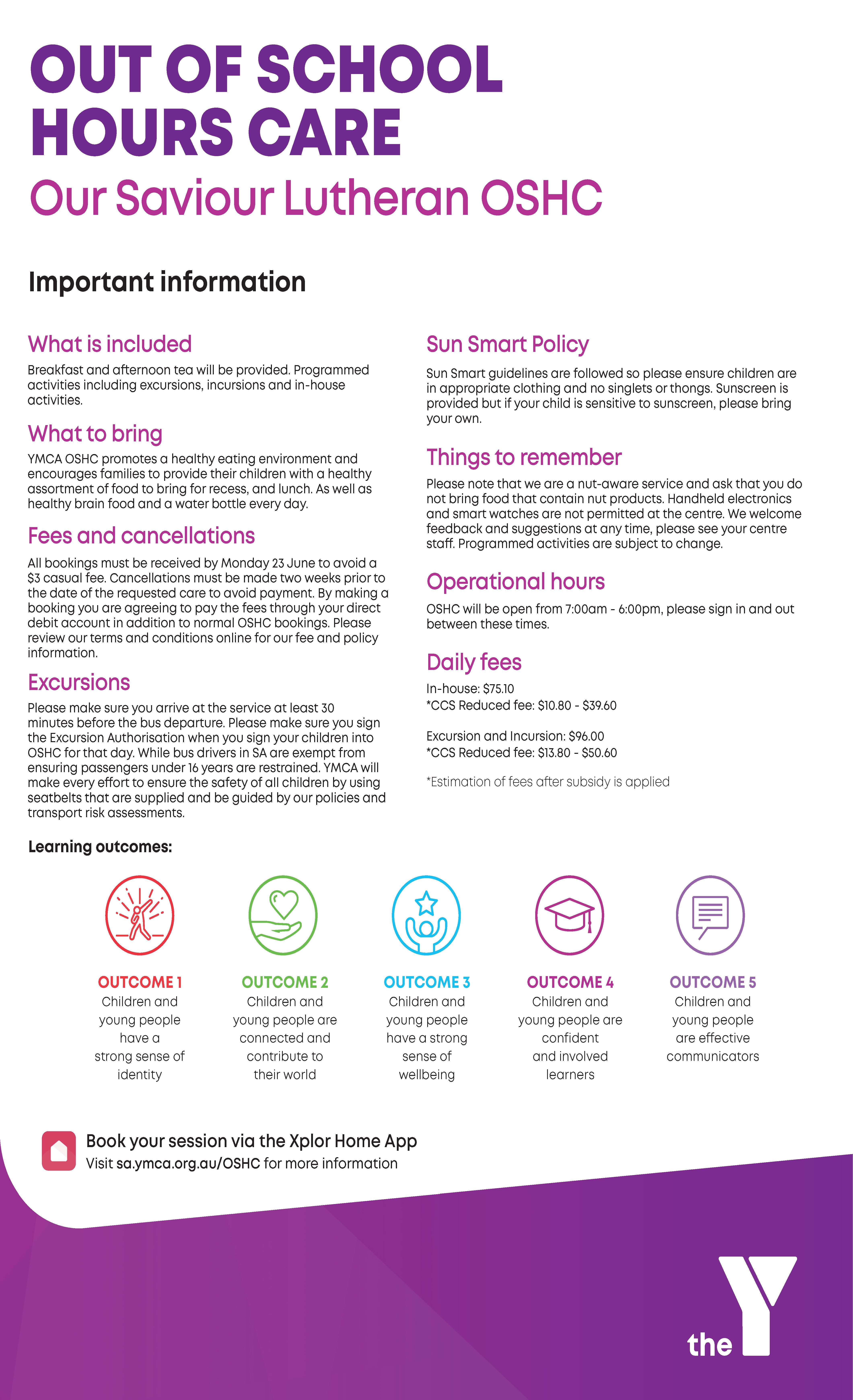 YMCA OSHC uses the best available childcare software solution called Xplor, making day-to-day OSHC management and bookings simple and convenient. Download the Xplor Home App from Google Play or the App Store!